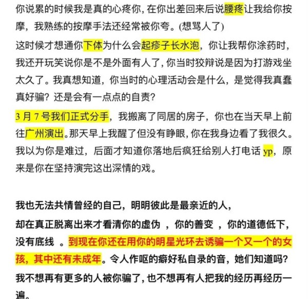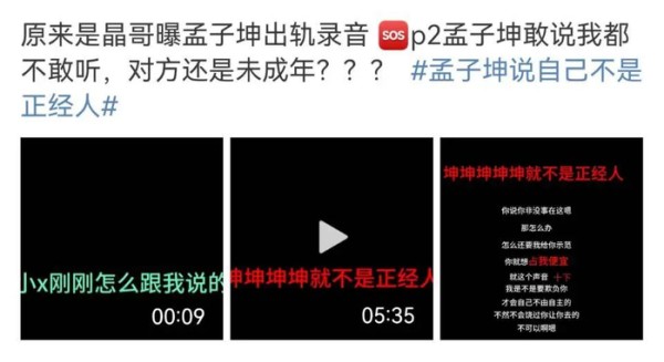 此外,她还指出孟子坤利用明星光环诱骗女性,包括未成年,私自录制亲密语音,涉嫌违反未成年人保护相关法律。
