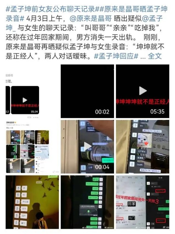 双方各执一词,让整个事件变得扑朔迷离。李晶的爆料有聊天记录、录音文件截图等作为证据,而孟子坤的回应看似条理清晰,却对关键的177条录音及出轨细节未作详细回应。这不禁让人想起娱乐圈中诸多类似的“罗生门”事件,当真相被掩盖在双方的口水战中,公众往往难以辨别是非对错。