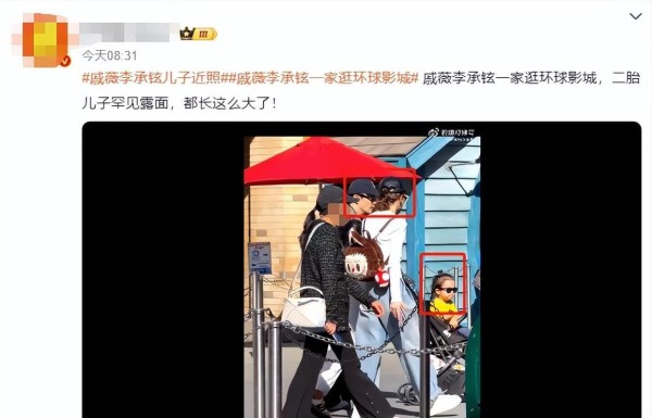 戚薇一家4口同游迪士尼,小儿子首次露面,Lucky正面神似李承铉