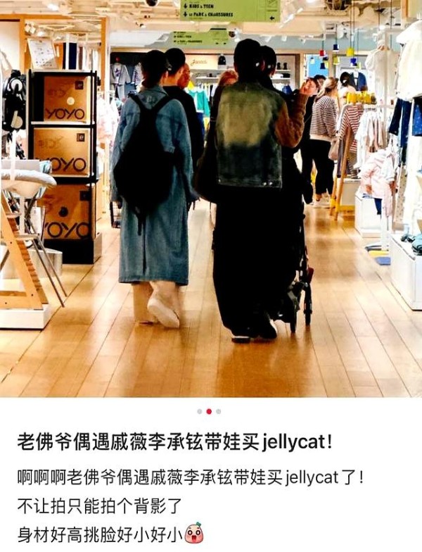 比如有网友就说,上次在巴黎老佛爷百货见到他们,也是一家三口,李承铉推着婴儿车,戚薇悠哉买jellycat,姿态很自然。