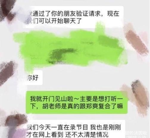 郑爽告诫胡彦斌勿炒作,二人聊天记录流出,胡彦斌尚未拉黑她