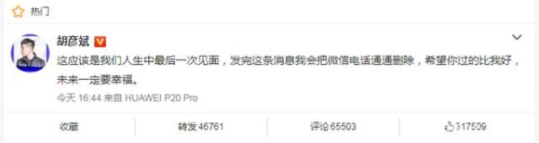 胡彦斌谈论前女友郑爽 爱情已成往事随风飘散