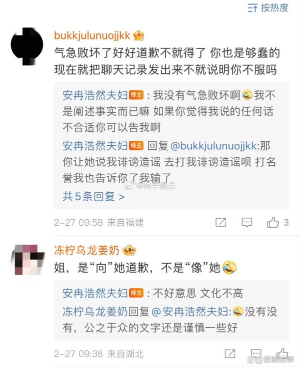 韩安冉向薛小婉公开道歉 被对方斥责是疯子与小人