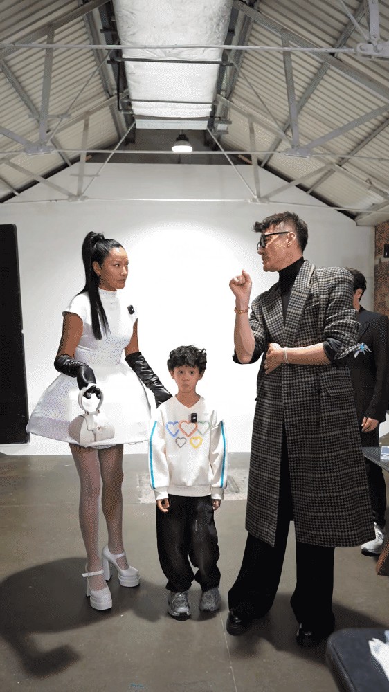 蔡国庆在旁边笑着调侃:“我儿子都成你们的道具了。”但庆庆却很认真地说:“我就是想和干爹干妈一起拍照。”孩子的话让现场的大人都愣住了,这个7岁的小男孩,用最纯真的方式道出了一个成年人不敢说出口的词汇——家人。