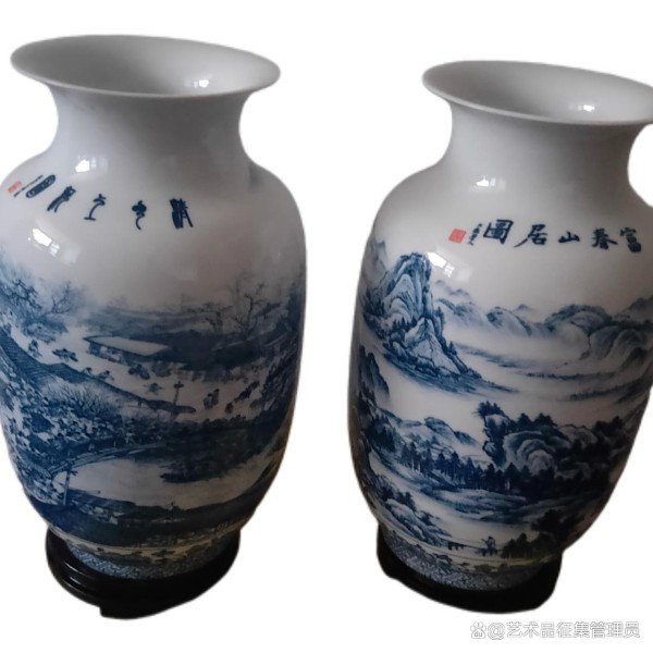 双瓶的收藏价值,还体现在 “场景适配性” 上:私人藏家可将其作为 “书房雅器”,彰显文化品位;企业可将其纳入 “艺术资产配置”,提升品牌文化格调;博物馆、美术馆可将其作为 “当代青花研究” 的核心展品。多元收藏场景的需求,进一步放大了双瓶的市场价值,使其在收藏领域具有广泛的认可度与流动性。