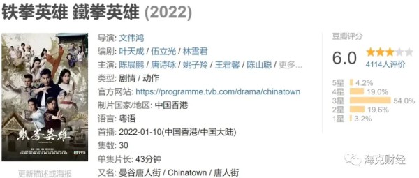 眼看剧集IP无效,TVB便以演员作为IP推进合拍剧,但也未成功。2022年的两部合拍剧《家族荣耀》与《廉政狙击》分别以港剧最擅长的豪门恩怨和查案反贪为故事主线,评分却只有5.5分和6.4分。
