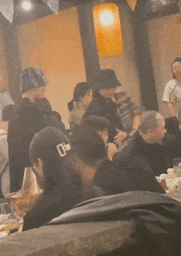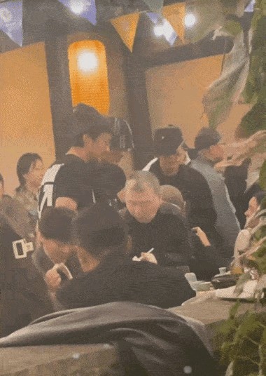 他们三个人一起来向大佬陈丹青敬酒,看到三个年轻人,陈丹青也是一愣,三个年轻人和陈丹青就在那里寒暄了起来。