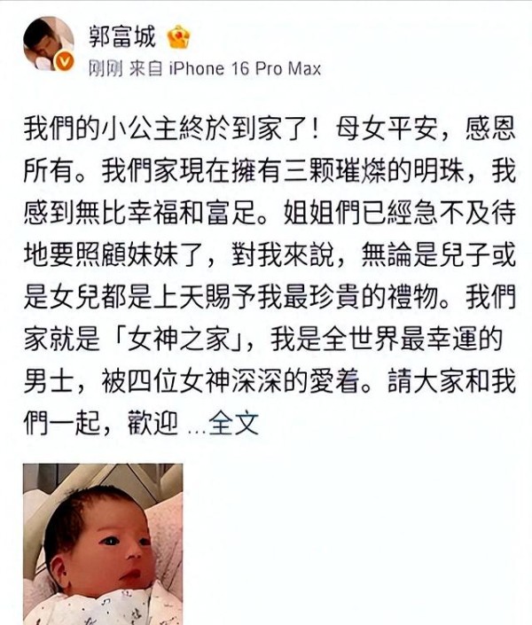 生不出男孩地位不稳?郭富城三胎得女不到五天!恶心一幕已现