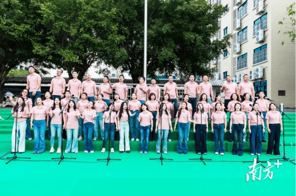 东莞二中学子也在这场盛宴中充分展现了青春风采。活动现场,同学们带来小组唱《青春女兵》,以飒爽的英姿和激昂的歌声展现当代青年的蓬勃朝气与爱国情怀;女声合唱《小美满》则以轻快的旋律和甜美的歌声,为现场带来了一抹温馨与甜蜜,尽显青春活力。