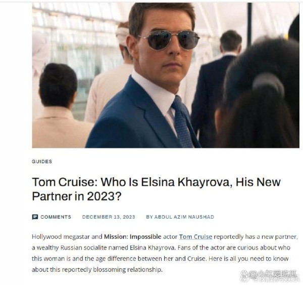 据一名派对现场的嘉宾透露,汤姆·克鲁斯和Elsina Khayrova走在一起时,仿佛诠释了爱情的美好画卷。形影不离的两人,他们的默契和深情让人看得如痴如醉。有人形容说,“他(阿汤哥)似乎对Elsina一往情深。”