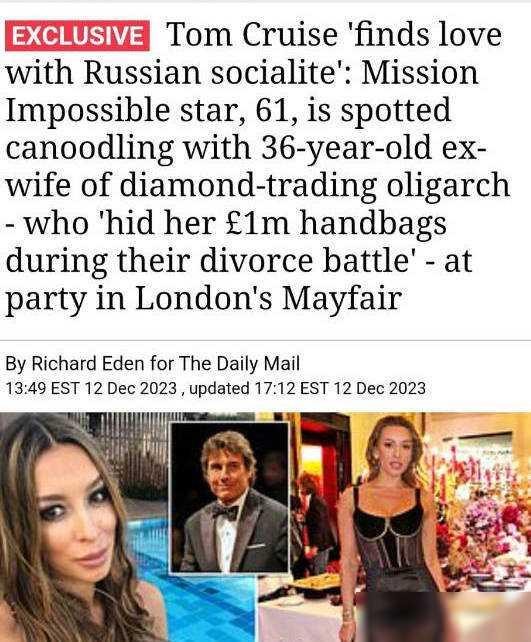 61岁汤姆·克鲁斯与36岁俄罗斯名媛官宣交往,女方颜值引发热议!