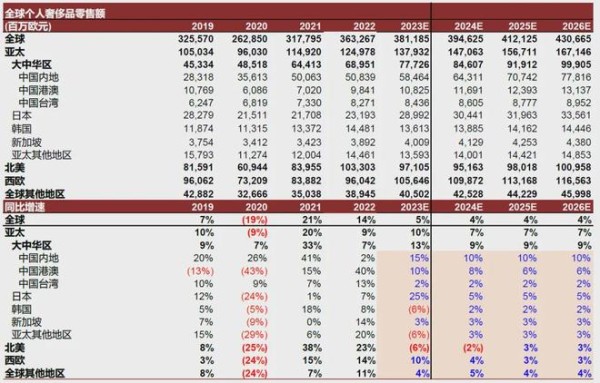 据中金预测,2024年全球奢侈品行业收入增速将回归正常化,至4-5%;大中华地区预计增速快于全球,受益于中国消费者收入提升。