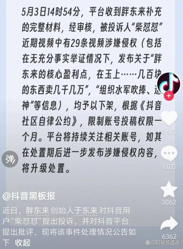 这边 “裤衩姐” 刚消停,“玉石哥” 柴怼怼又来捣乱。这柴怼怼经营着玉石店,为了流量毫无底线,视频内容东一榔头西一棒槌。瞅准胖东来的热度,他突然发视频称胖东来玉石骗人,还大放厥词 “3 千的比你 3 万都好”。胖东来烦透了这些无端抹黑,果断硬刚。柴怼怼见胖东来不低头,恼羞成怒,不顾 500 万追责风险,疯狂发视频抹黑。可随着关注增多,他自己却被扒得底儿掉,同行揭露他店里同款饰品比别人贵近 200 倍,还存在虚假宣传,甚至早年卖假中药的事儿也被翻出。最终,抖音官方下场,封禁他账号一个月,还胖东来一个清白。
