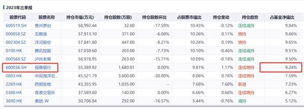 据2023年三季报,去年9月末,在易方达优质企业三年持有基金的十大重仓股中,招商银行以基金净值占比9.24%位列第六位。此前公告显示,2021年9月29日和30日,张坤连续两日出手,为该基金新购1680万股招商银行。在此之前,易方达优质企业三年并未持有招商银行。