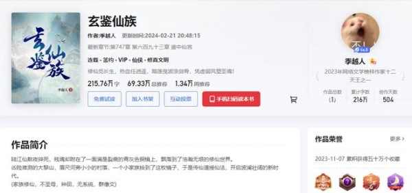 前面提到的年入百万的00后作家,就是起点的作者季越人,代表作《玄鉴仙族》。他说,自己一开始并没有打算成为全职作者,还曾经想做家教挣钱,但当他第一次在起点后台看到5647元的收入时,确切地感受到,写作也可以给自己带来生活上的保障。后来他的作品订阅量越来越高,加上打赏、稿费等收入,达到现在业内人士估算的年入百万。如此大的收益下,大量00后作者涌入网文市场不足为奇。