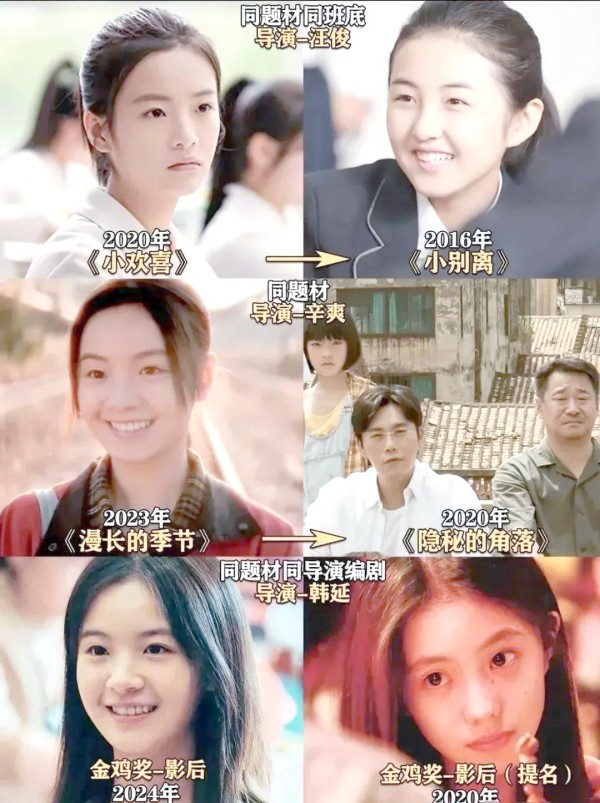 网友们发现了一个有趣的现象:李庚希参演的电视剧似乎都在沿着前辈演员的足迹前行。张子枫、刘浩存、赵今麦的经典作品,在李庚希的演绎道路上都能找到相似的痕迹。这一现象引起了网友们的热议,并戏称她为“预制菜影后”。网友热议其作品的相似性和被冠以“预制菜影后”的称号,探讨她和前辈演员之间的关联。