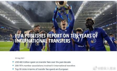 根据这份研究报告,这10年间转会费支出最多的30家俱乐部全部来自欧洲。其中英超12家,西甲和意甲各5家,德甲3家,法甲和葡超2家,俄超1家。这30家俱乐部的转会支出总额,占同期全部支出的47%。10年来转会支出排名榜首的是曼城、领先于切尔西和巴塞罗那,而巴黎圣日耳曼仅排名第4位。不过,国际足联这份报告没有给出具体的金额。