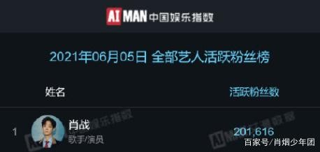 新一期艺人活跃粉丝榜单出炉,肖战多日蝉联榜首,证实超高人气