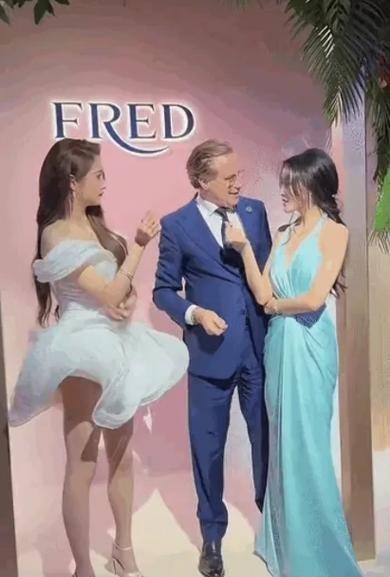 你要说他是保护艺人吧,那动作和表情,怎么看都像是怕艺人飞了似的。