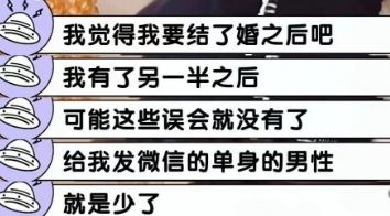 对于她的这种考量,还有网友说挺好。我只想说“怕别的男人的对象误会就找个人嫁了”?本末倒置了吧?