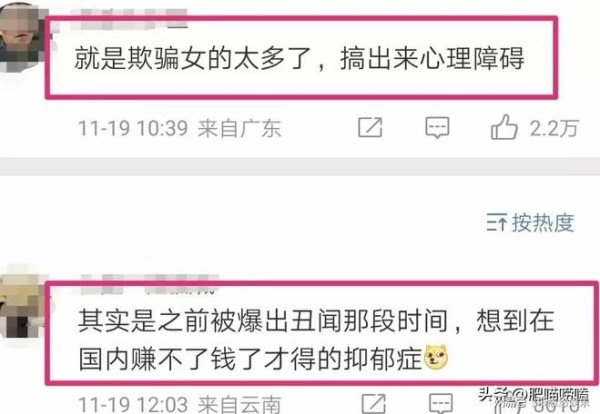 “也有可能是因为之前被爆出丑闻的时候,想到在内地赚不了钱,才得这个病的。”
