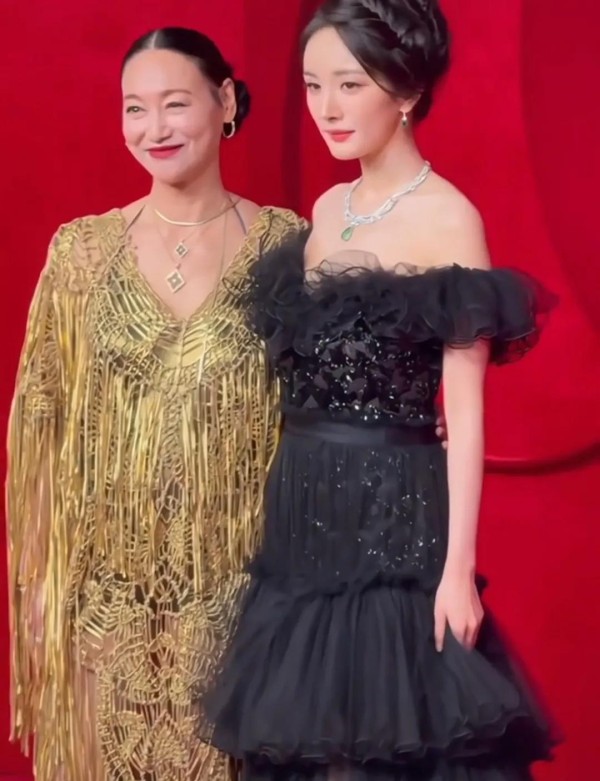 那天的活动现场,那叫一个星光璀璨,大家都想在红毯上狠狠美一把。杨幂和惠英红压轴出场,直接把气氛拉满!杨幂穿了两套高定礼服,一套是Giambattista Valli 2024春夏高定黑色抹胸长裙,搭配着Bvlgari高级珠宝,一出场就像暗夜女王,高贵冷艳;后来又换上Georges Hobeika 2025春夏高定金色亮片露肩裙,瞬间又成了闪耀的女神,每走一步都闪闪发光,真的太绝了!