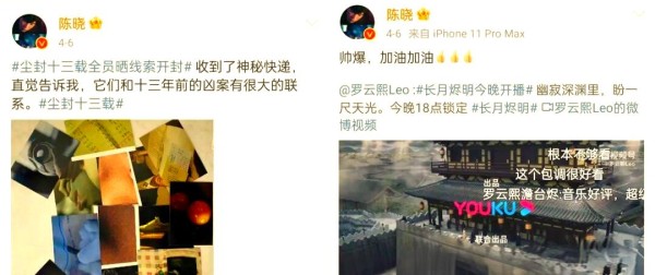 罗云熙的新剧《长月烬明》将于4月6日震撼登场,而陈晓的《尘封十三载》也选择在这一天与观众见面。在开播当天,陈晓通过微博为两部剧进行了宣传,其中一条便是对罗云熙主演的《长月烬明》的倾力推荐。尽管两部剧在同一时间播出,难免会产生一定的竞争,但陈晓依旧选择为罗云熙的新剧助威,这无疑展现了他们之间坚不可摧的友谊,同时也彰显了陈晓的宽广胸怀与高远格局。