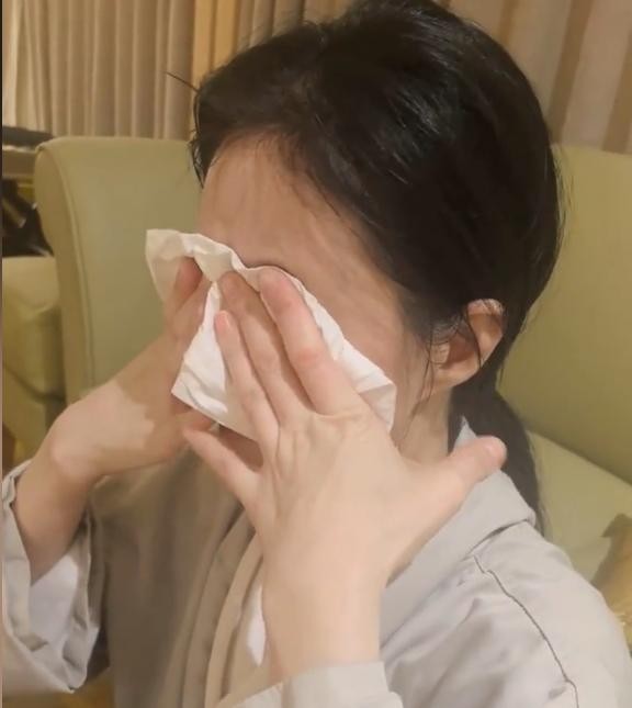 视频内容也挺有趣,就是她在微醺的状态下,突然就抹起了眼泪,