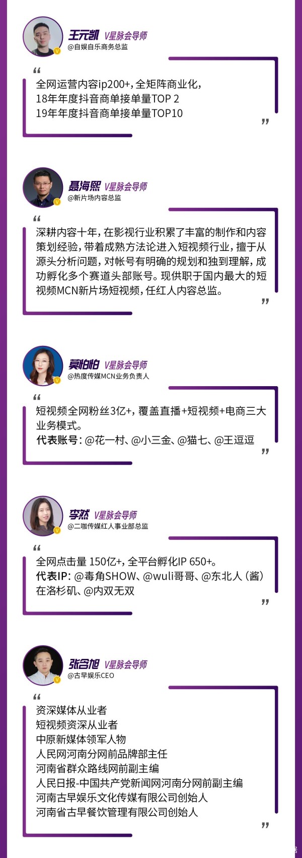 “星脉会”将为短视频从业者构筑资源共享网络信息的平台,利用4年短视频营销经验,行业人脉资源以及对短视频行业敏锐的洞察能力,搭建帮助短视频从业者打破信息壁垒、实现信息共通、持续探索创新商业模式的资源性社群服务平台。