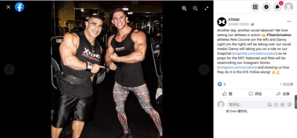 其中不乏众多明星运动员、著名运动选手亲身推荐,并卖力为Xtend品牌声援,如职业联盟健美运动员Pete Ciccone和Danny Light、国家级健美选手Rocio Ruiz、职业运动员Ryan Doris等等。