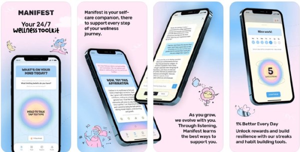 Manifest的核心功能包括个性化对话、即时支持、每日肯定和游戏化挑战。用户可以在应用中进行无限的发泄环节、积极思考训练,以及专为其设计的冥想课程和心理健康对话。据Manifest团队透露,截至目前,用户在Manifest中已经生成了超1870万次的清单目标表现。