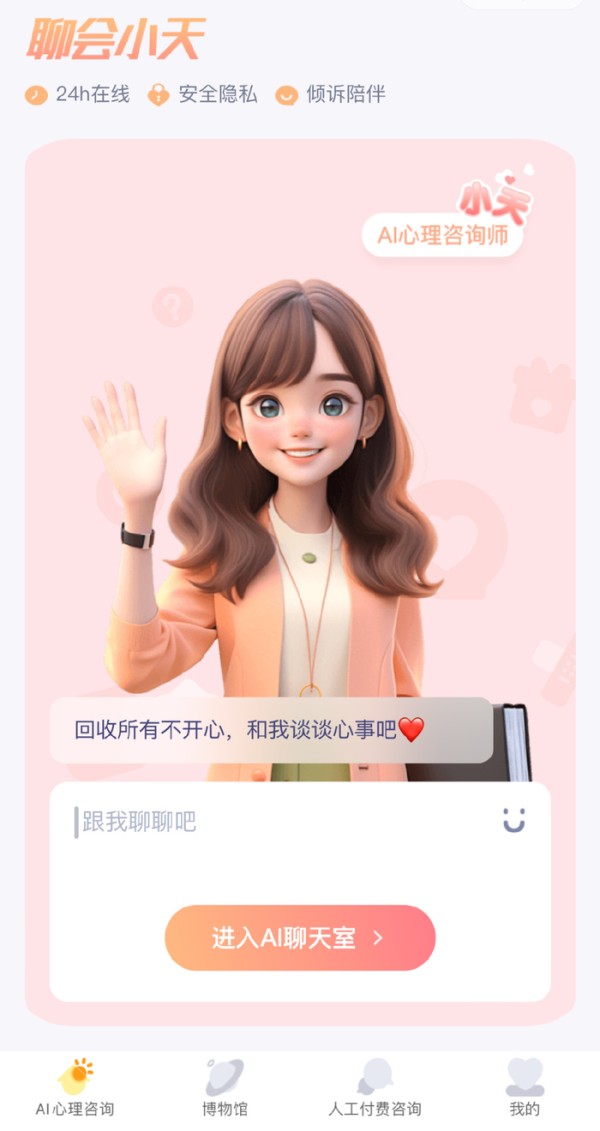 AI心理疗愈机器人“聊会小天”是西湖心辰发布的第一款公益AI心理情感陪伴产品。