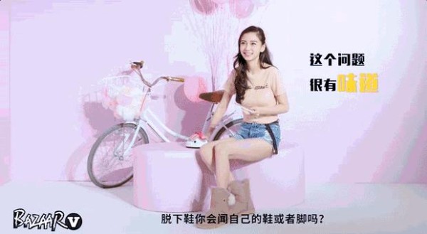 难道她是想在镜头前拿起鞋子假装打电话吗?这张照片让我更加困惑不解!Angelababy竟然拿着靴子凑近自己的鼻子,还闭着眼睛,仿佛沉浸在某种香气中。Angelababy在采访中自曝了一个让人意想不到的习惯:她竟然会脱鞋闻脚!