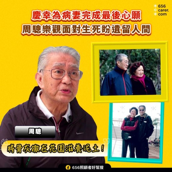 周聪续说:将来我百年归老后,我真的希望能够把骨灰撤在花园,滋养泥土,这样也可以说是遗留人间。他解释人是哭着来到这世界,如果走时可以带著笑容,那就死而无憾。