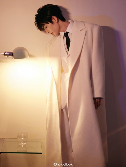 张凌赫 x Lancome 90周年点灯活动 一袭白大衣造型,冬日男神气息越夜越浓