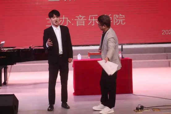 会上,周飞老师通过理论知识与生活经验相结合深入推进的方式进行讲解,使同学们明确了能力提升与表演联系的需求。随后,有我院四位在校生进行演唱,周飞老师进行了详细的现场声乐教学,逐句解剖处理细节,详细的进行曲目分析,增强了学生的表演思维。最后周飞教师进行了两首声乐曲目的演唱,由杨煜瑶、赵天坤两位老师进行艺术指导,给本次优秀校友学术报告会画上了完美的句号。