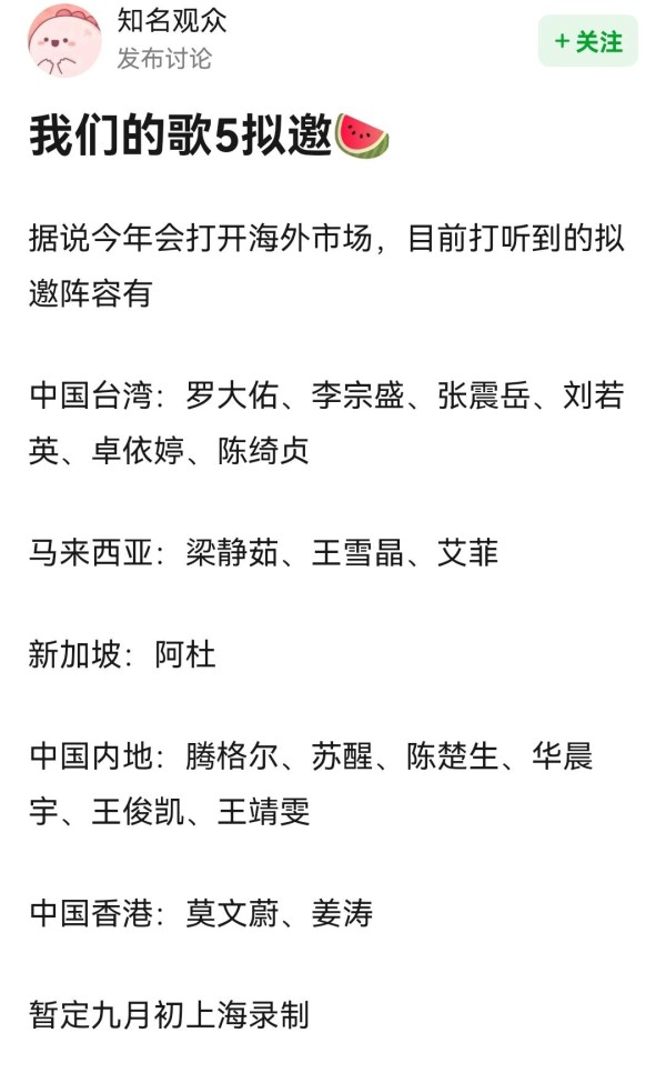 《我们的歌5》拟邀嘉宾名单曝光,天王天后扎堆,王俊凯王靖雯受邀