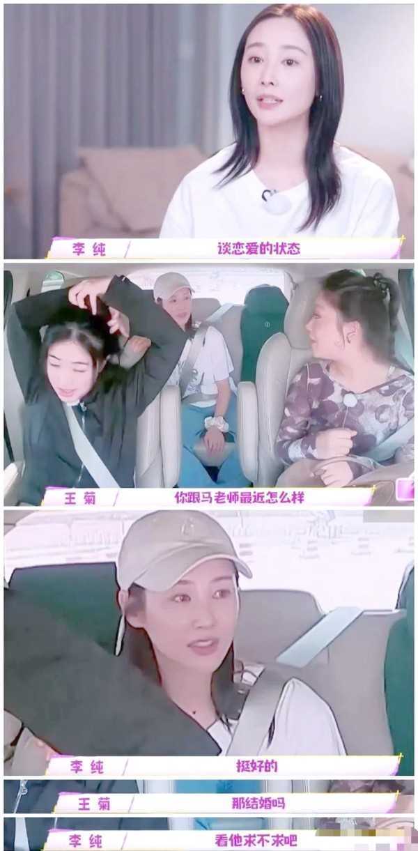 在综艺节目《我家那闺女》中,王菊向李纯提出了关于婚姻的话题,询问她是否考虑过结婚。对此,李纯则以一句“看他求不求吧!”巧妙地回应了这一问题,显示出她对于婚姻的期待是建立在双方共同意愿的基础之上。