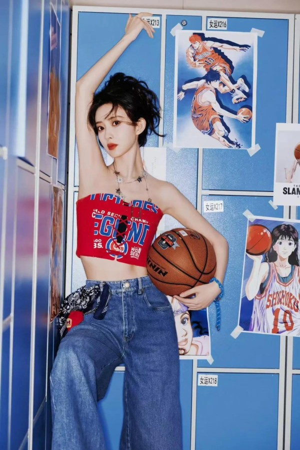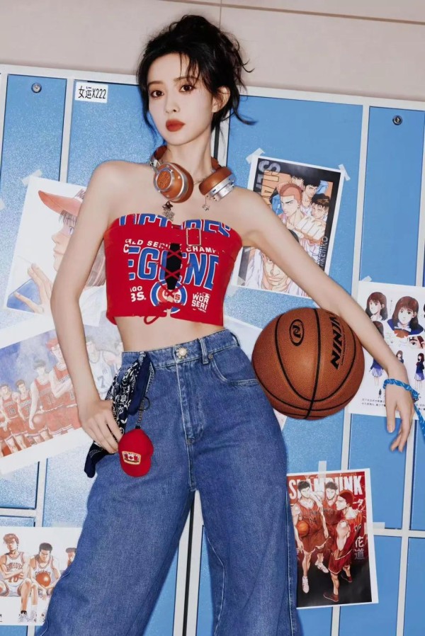穿搭这件事,真的是见人品味、见实力的。孟子义就很懂得扬长避短,把自己最美的一面展现出来。红色抹胸的亮眼效果配上篮球主题的背景,青春活力扑面而来,仿佛回到了学生时代最美好的样子。