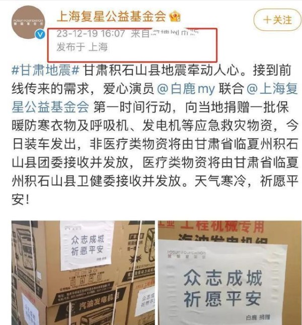 明星们的爱心速度,让甘肃地震灾区感受到温暖日喀则地震,刘亦菲捐730个暖炉,爱心满满温暖人心