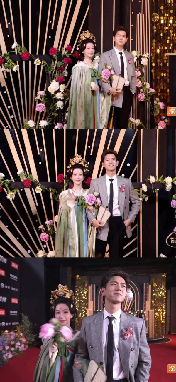 迪丽热巴和杨紫同时官宣微博之夜,热评不相上下,红毯上争奇斗艳