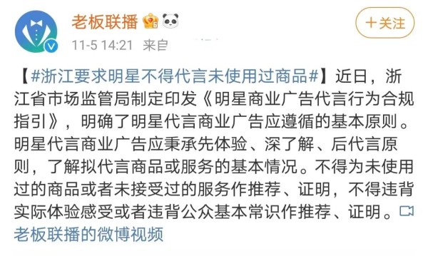 近日,浙江省率先颁布了《明星商业广告代言行为合规指引》,这则条令对明星的代言产品的乱象做了统一的规范,总结归纳起来有以下三个特点: