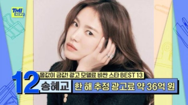 韩娱代言费排行!宋慧乔一篇文章赚上千万!年广告收入不敌他们!
