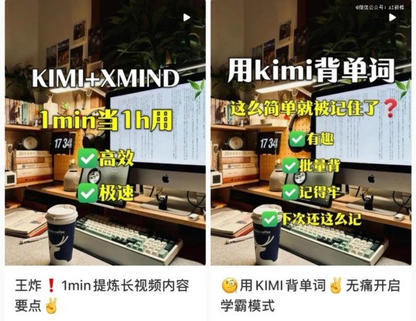 这些视频通常采用口播+图片滚动的方式,通过对话问答的方式展现Kimi模型能力的强大,并引导用户进行下载。