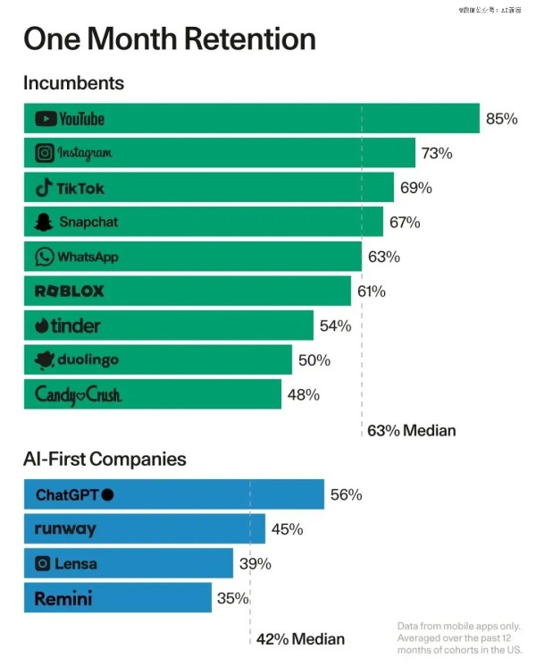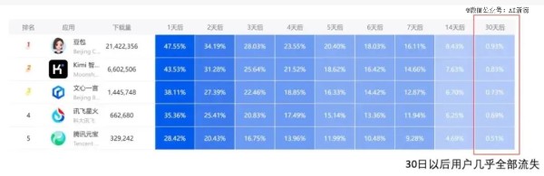 AI产品留存率截图,此前曾在国内AI圈引发热议,图片来源网络