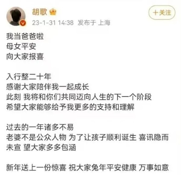 2023年,女儿小茉莉的诞生,为胡歌的世界带来新的曙光,也让他对时间有了更深的紧迫感。初为人父的他,感受到生命传承的奇妙,也意识到自己陪伴女儿的时间有限。