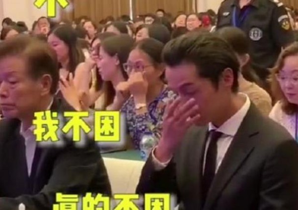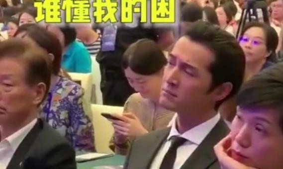胡歌听演讲犯困,努力装不困的样子,像极了上课的自己