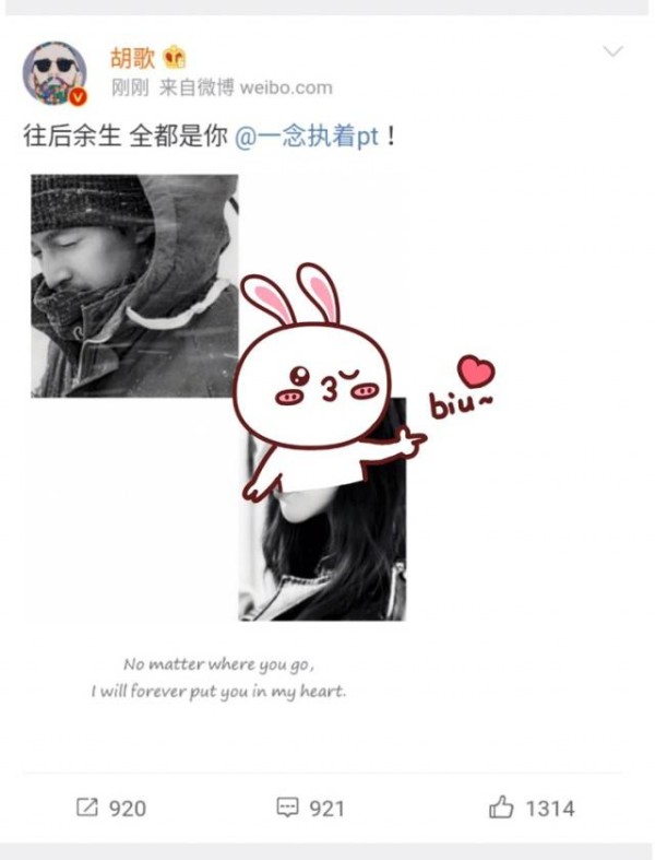 胡歌正式公开恋情:余生请多指教,微博再度沦陷?杨幂:再续前缘