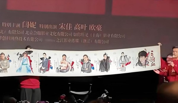 当《三滴血》路演的灯光聚焦于舞台中央,一份特殊的礼物让全场瞬间陷入温情——一位真爱粉手捧8米手绘长轴画卷走向胡歌,画卷上串联起他从艺20年的经典角色,从《仙剑奇侠传》里灵动的李逍遥,到《琅琊榜》中隐忍的梅长苏,再到新片《三滴血》的全新角色,每一帧都细腻传神。这份耗时十余天连轴赶制的心意,让见惯了大场面的胡歌当场破防,手指轻轻摩挲画纸,眼眶泛红多次擦眼角,连说“太感动了,真的没想到”,这份双向奔赴的热爱,成为路演最戳心的名场面。