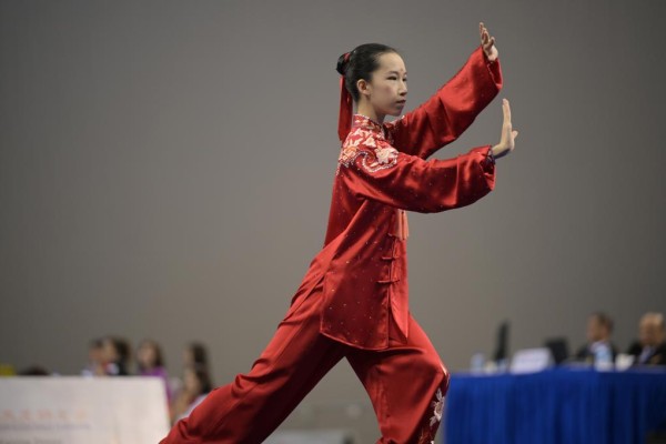 8月27日,邓智瑄在第四届世界太极拳锦标赛武式太极拳(46式)比赛中。新华社发(邓智炜 摄)